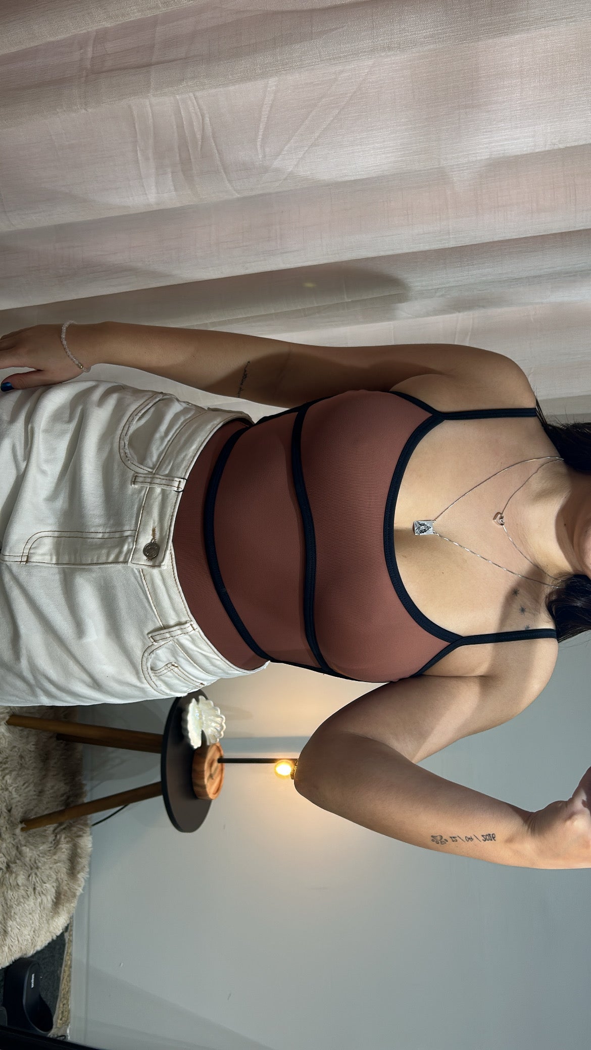 Body em Poliamida com Alças Múltiplas nas Costas - Marrom com Preto