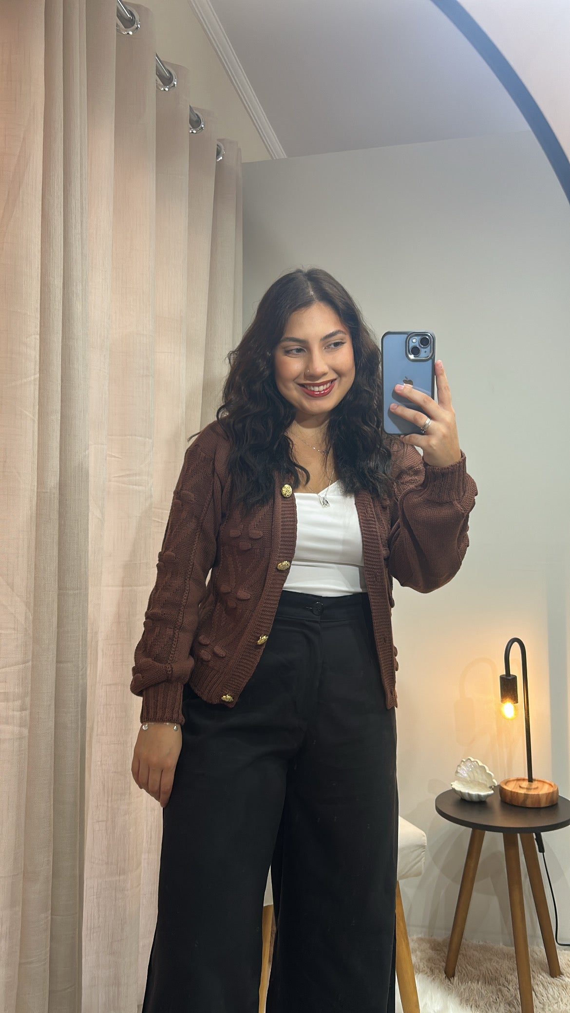 Com detalhes em relevo e botões dourados, esse cardigan é a escolha perfeita para um look elegante e quentinho. A peça traz um ar romântico e estiloso, ideal para compor visuais tanto casuais quanto mais sofisticados.