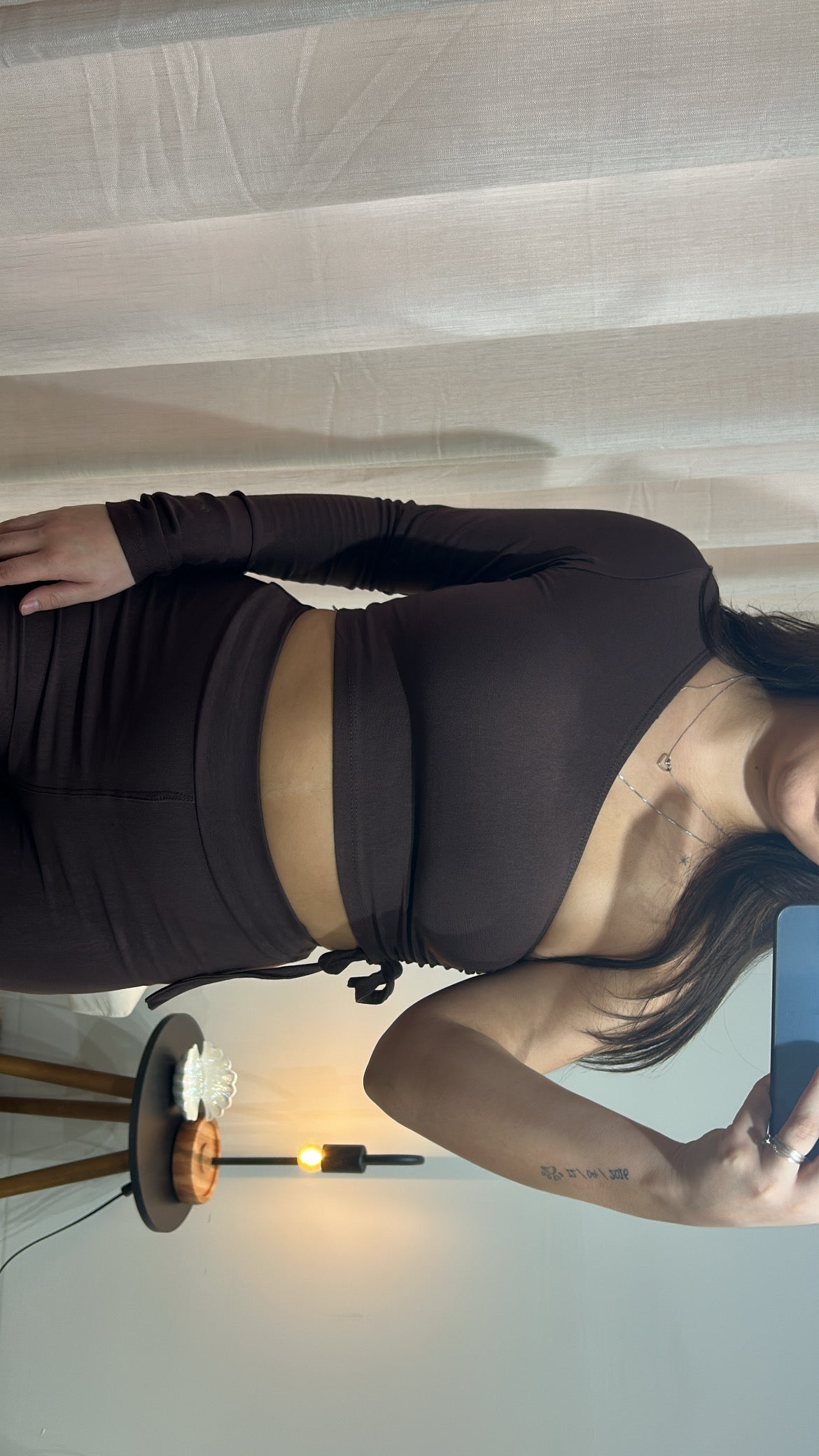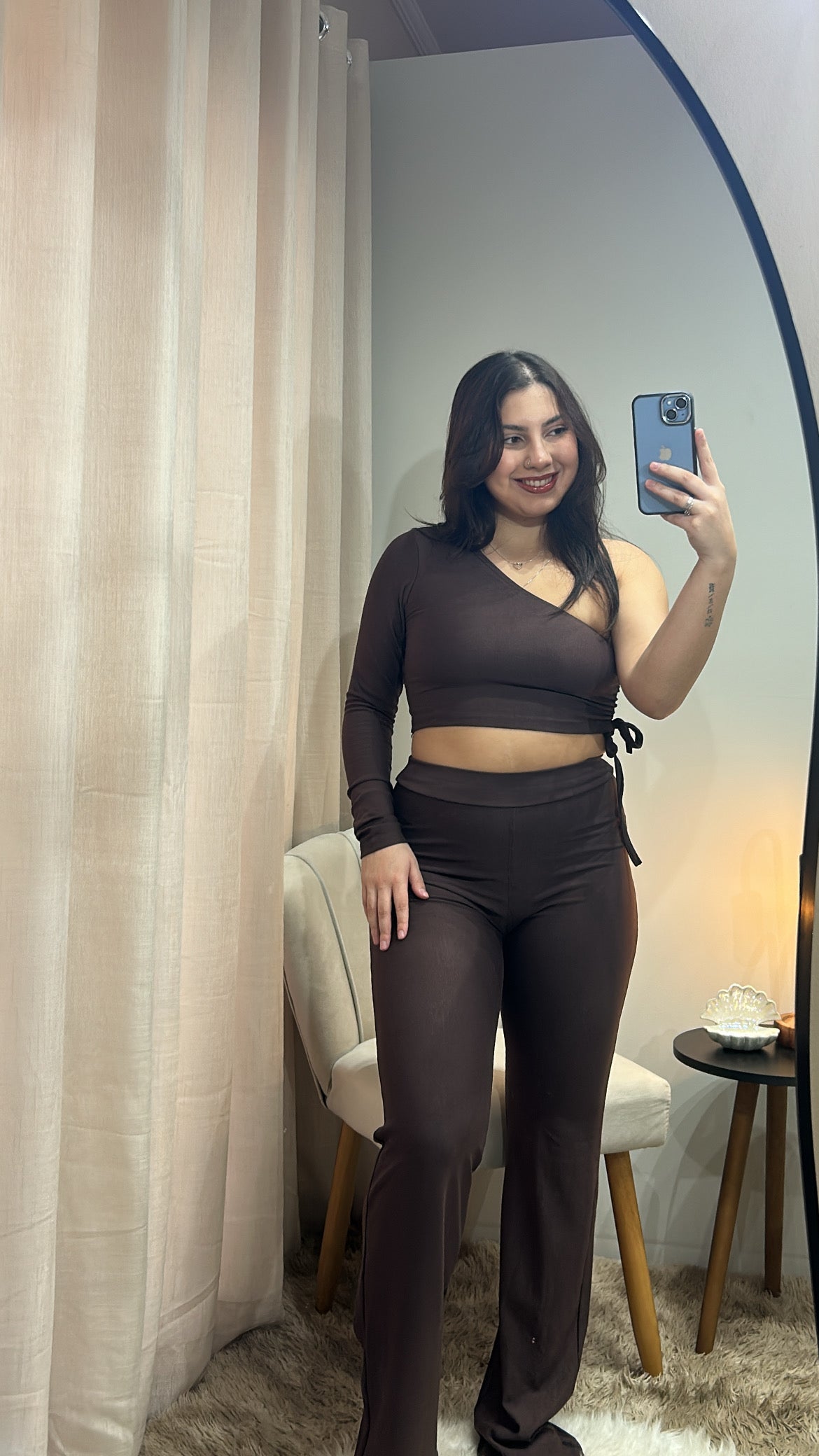 Moderno e cheio de estilo, esse conjunto é a escolha perfeita para quem ama peças autênticas e confortáveis. A blusa traz um design assimétrico com uma manga longa e amarração lateral que valoriza a silhueta de forma charmosa. A calça de cintura alta tem caimento reto e tecido com leve elasticidade, conforto de movimento sem abrir a mão do estilo.
