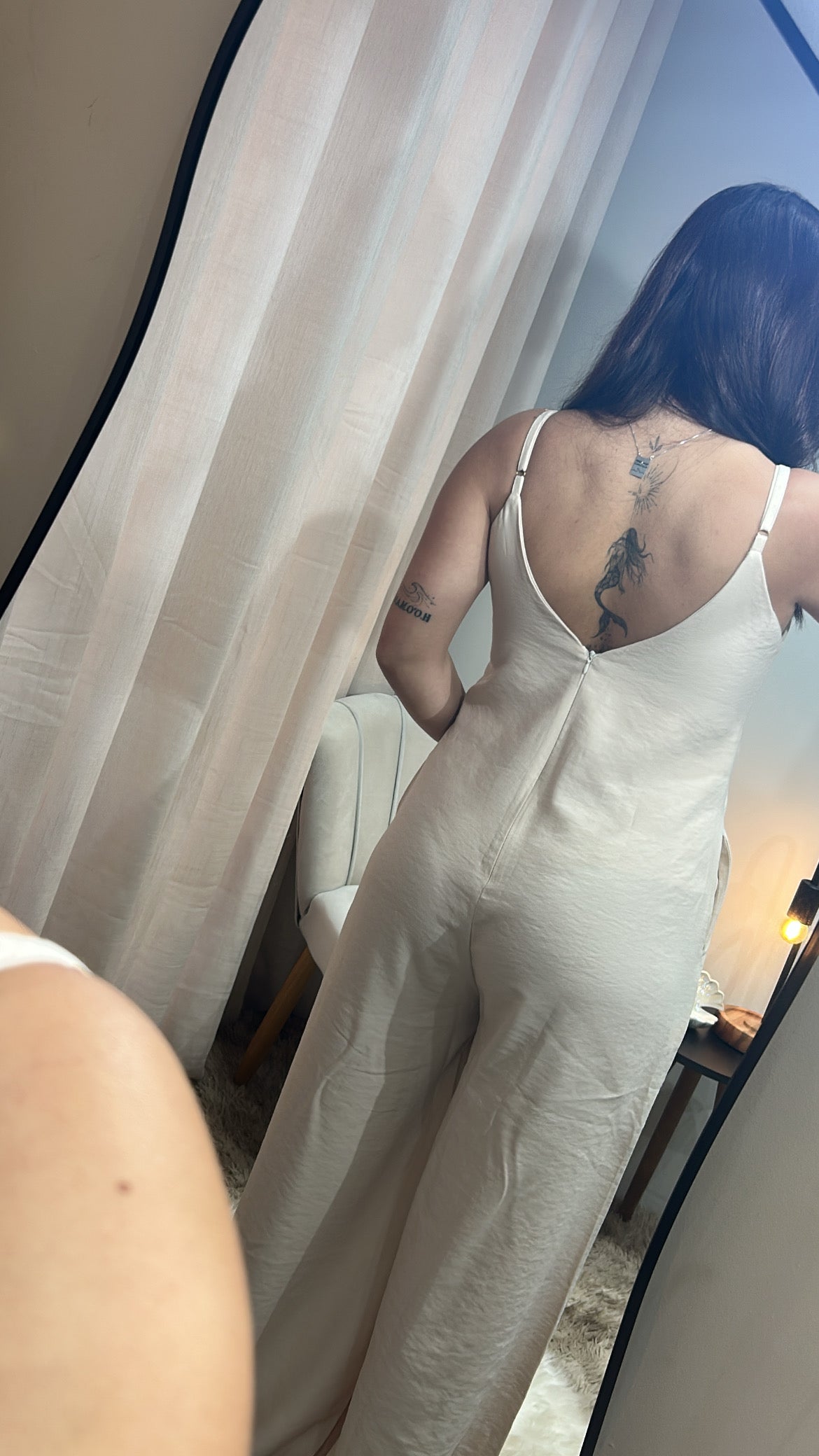 Esse macacão é a definição de elegância descomplicada. Confeccionado em tecido leve e com ótimo caimento, ele traz alças finas ajustáveis, decote discreto em V e uma modelagem soltinha que valoriza a silhueta com conforto. O destaque fica por conta das costas com decote profundo, que adiciona charme e sensualidade na medida certa.